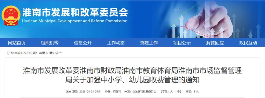 原标题:《事关中小学、幼儿园收费,淮南四部门通知!》