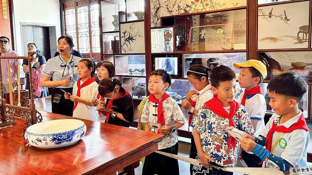 2023年8月20日,苏州教育博物馆,平江实验学校的孩子们在参观博物馆。视觉中国 图