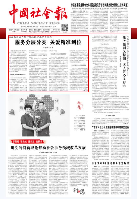 原标题:《泰州着力提升帮扶困境儿童专业性——服务分层分类 关爱精准到位》