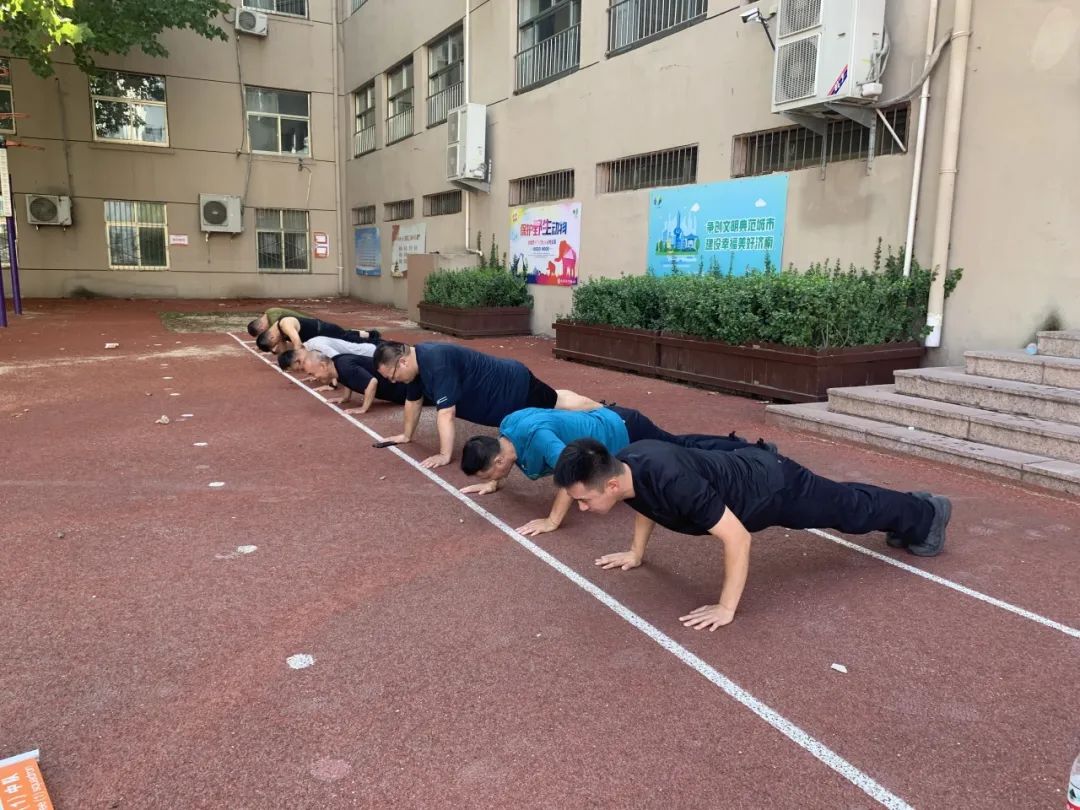 基础体能是公安队伍遂行“防风险、保安全、护稳定、创满意”使命任务的关键和支撑。分局党委高度重视“强体魄、健身心、壮警威”体能练兵工作,下发专门通知,明确训练内容、考核对象和达标要求。严格落实“局长训练日”“班前训”“战中练”等制度,各级领导干部发挥“头雁效应”,带头参加体能训练和健身强体活动。同时,采取“循序渐进、因人而异、突出重点”等方法,鼓励民警利用“碎片化”时间进行自主强化训练,机关各值班组每日早7时,由带班领导组织本值班组民警到办公楼前及负一层健身房,集体开展立定跳远、仰卧起坐、俯卧撑、4*10米折返跑、男1000米(女800米)或男2000米(女1500米)健步走等科目训练;各处(室)、大队立足警务实战需求和岗位实际,常态化组织所属民警开展训练;各驻外单位坚持“集体训练为主、个体自训为辅”原则,有计划、有步骤地组织民警集中或分组体能训练,切实做到训练时间、人员、内容、效果“四到位”,有效缓解“工训矛盾”,确保民警每周普遍参加1次以上体能训练、经常参加训练人数达到70%以上,全面提高体能练兵活动的组织化、系统化、规范化。