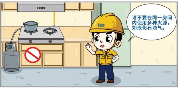 安全要点:同一房间内不得同时使用液化石油气和天燃气、酒精、燃料油、木炭等其它燃料。