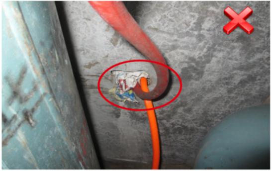 安全要点:软管不得穿越墙、楼板、顶棚、门窗。