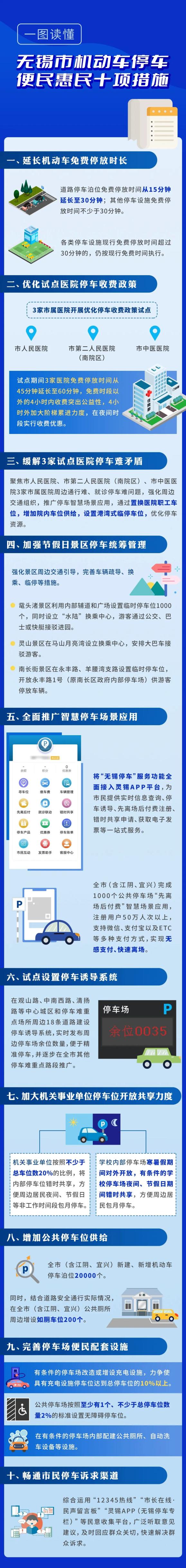 车位,继续扩。加大机关事业单位停车位开放共享力度,机关事业单位按照不少于总车位数 20%的比例,将内部停车位错时共享,方便周边居民夜间、节假日等非工作时间段包月停车。增加公共停车位供给。全市(含江阴、宜兴)新建、新增机动车停车泊位 20000 个。