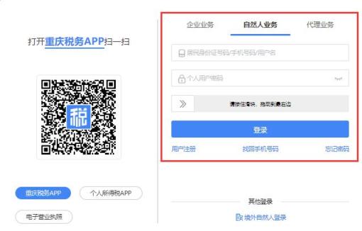 使用重庆税务APP、个人所得税APP、电子营业执照扫描页面左侧二维码,可快速实现“扫码即登录”。