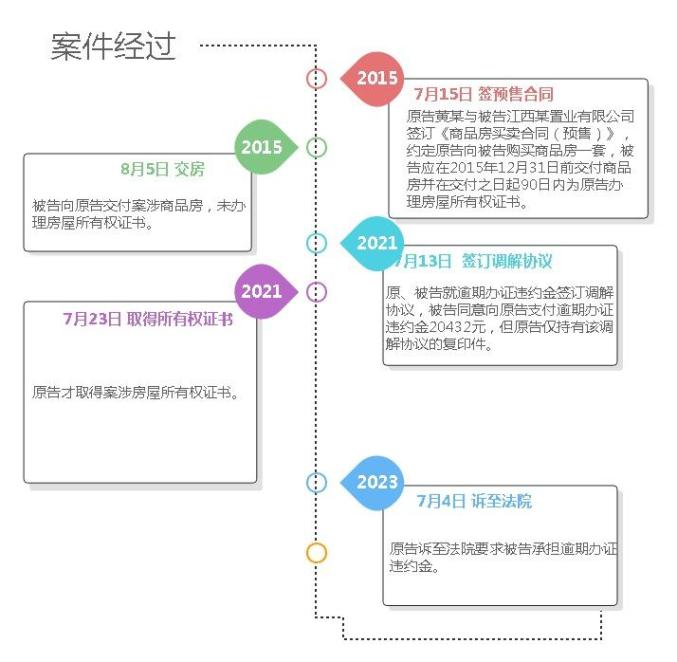 最后,法院依据调解协议的内容判决支持了原告逾期办证违约金的诉请。目前,该案判决已生效。