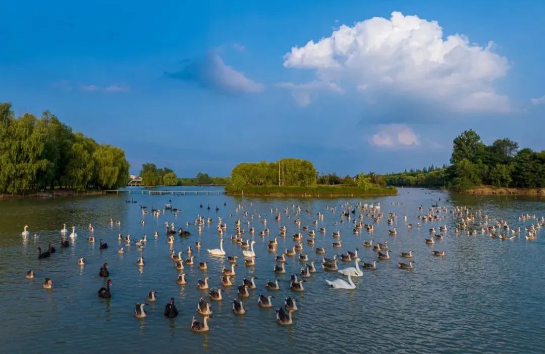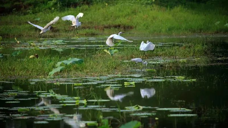 秋日的运河湿地,百鸟展翅齐飞,成群的白鹭在湿地上空盘旋,并在树林里栖息。游客可乘坐观光画舫船近距离观赏,在这里观看百鸟齐飞的壮观景象,体验如诗如画的原生态自然风光。