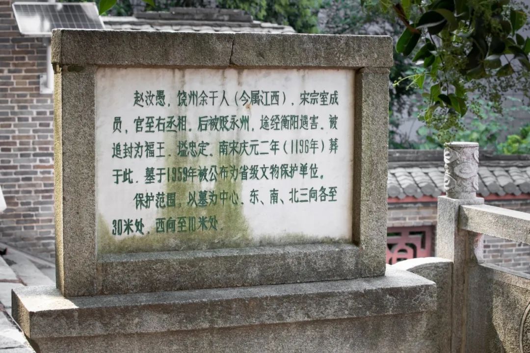 福王墓即赵汝愚墓,位于妙高峰北麓青山祠,占地约500 平方米。墓葬坐南朝北,南依妙高峰,北据高约 4 米的石基使慕地成为依山之台地。台地中部有椭圆形墓冢,以花岗石砌墓围,南面依山处砌高约 2 米的围墙,东南角有门与外相通,北面临石基有石护栏,东西各立华表。石基中间有台阶 30 余级基壁上嵌石碑,碑上首刻“南宋忠定赵福王墓”,下首刻“南宋庆元二年丙辰安葬,清宣统二年庚成续修”,中为清末长沙名士叶德辉所撰碑记。台基前方约 10 米处右侧有墓庐。赵汝愚为饶州余干(今属江西)人,宋宗室,官至右丞相,被韩任胄所诬贬永州时经衡阳遇害,后追封为福王溢忠定。因死于旅途,葬址说法不一,此墓或为衣冠冢。为湖南省文物保护单位。