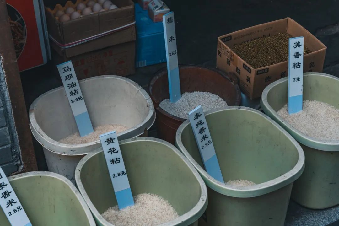 走在这条巷子里,时间仿佛按下慢动作播放键,路边小店还保留着童年记忆中的米桶。
