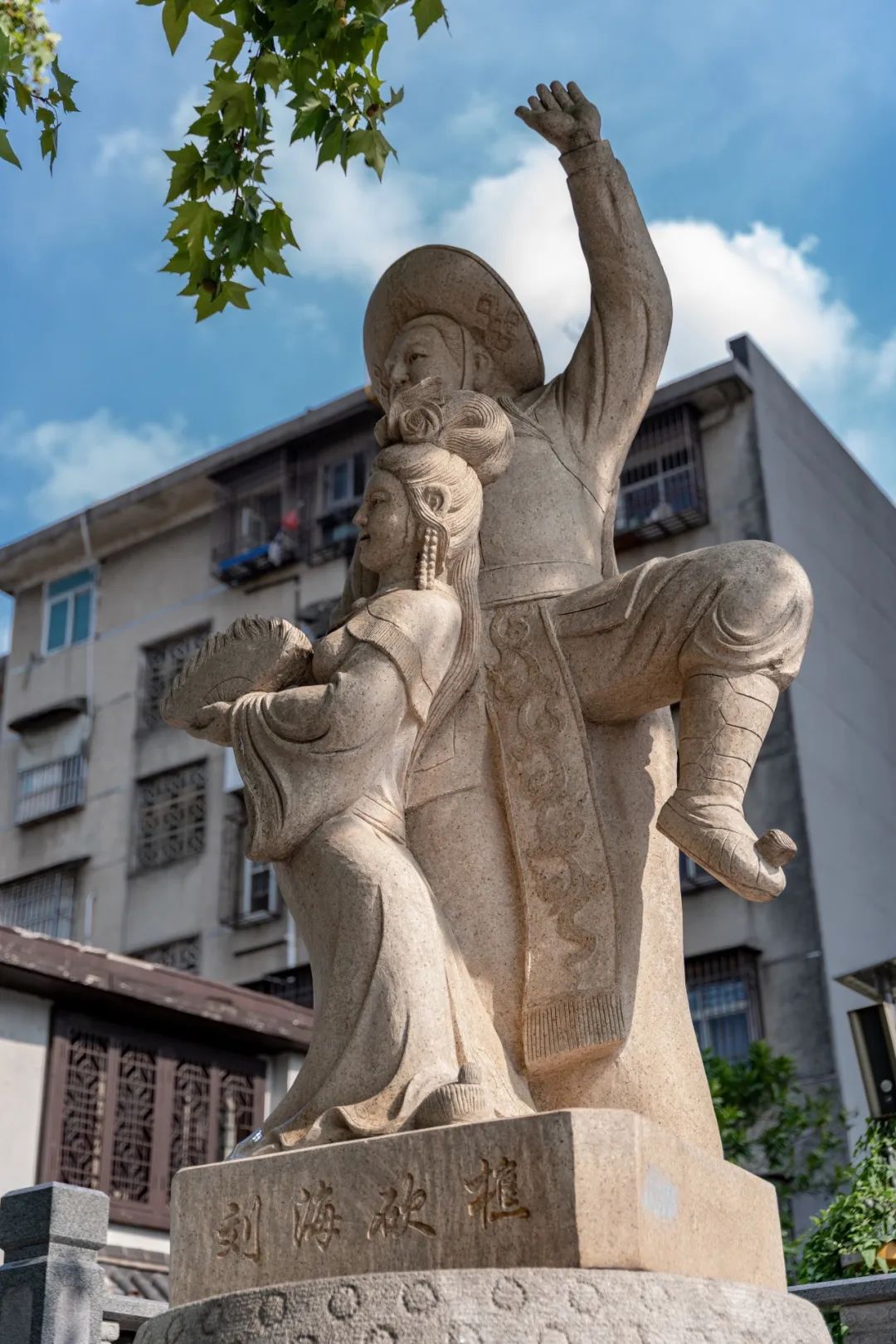 沿着围墙,尽头处的巷口便是此次妙高峰之旅的起点,一座高大的麻石牌坊在红墙绿树的衬托下显得古韵十足 ,上刻有“妙高峰城南旧事街”,两侧对联“长与流芳,一片当年干净土;宛然浮玉,千秋此处妙高峰。”