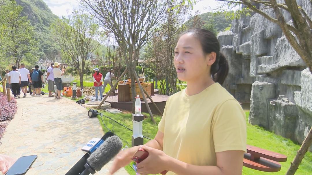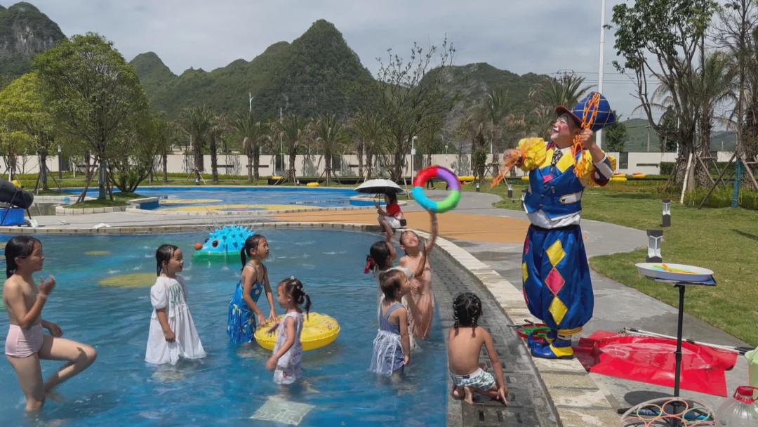 在紫云自治县黄鹤营温泉度假村内,水上乐园和泳池里也很是热闹。