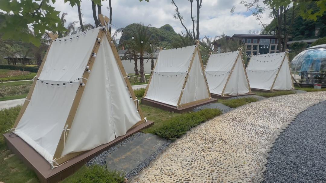 我们月牙湾民宿分为三种房型,有太空舱,星空玻璃房,还有帆船帐,可以烧烤,露营亲子游,然后自开业以来,周末基本上都是满房的。