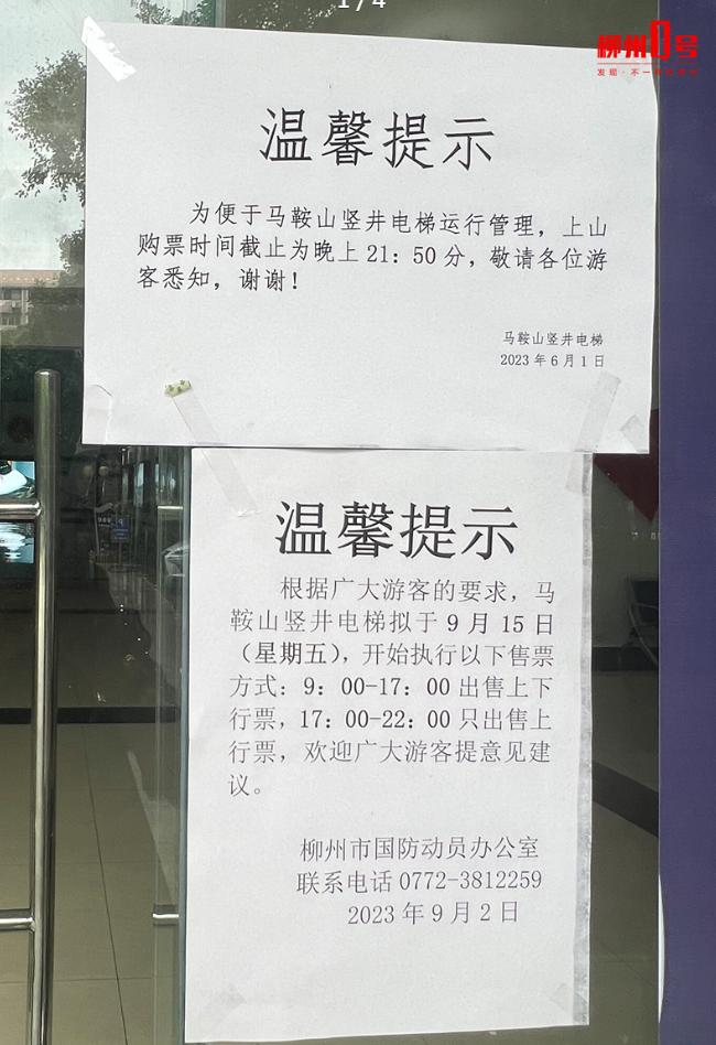 记者9月8日从鱼峰公园获悉,马鞍山竖井电梯售票方式和马鞍山开放时间有调整。9月15日起,马鞍山竖井电梯售票时间和方式改为:9:00—17:00出售上下行票;17:00—22:00只售上行票。9月16日起,马鞍山开放时间调整为6:30至22:30。