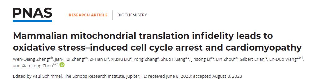 原标题:《【学术前沿】PNAS | 周小龙/王恩多团队揭示线粒体翻译保真性失调导致细胞周期阻滞与心脏病》