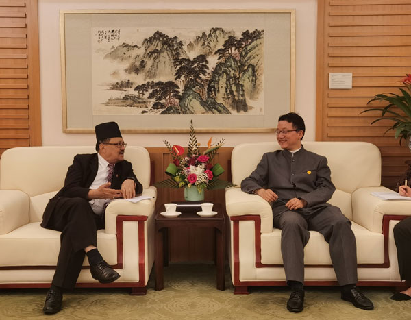 2023年9月13日,外交部亚洲司司长刘劲松会见尼泊尔驻华大使施雷斯塔。