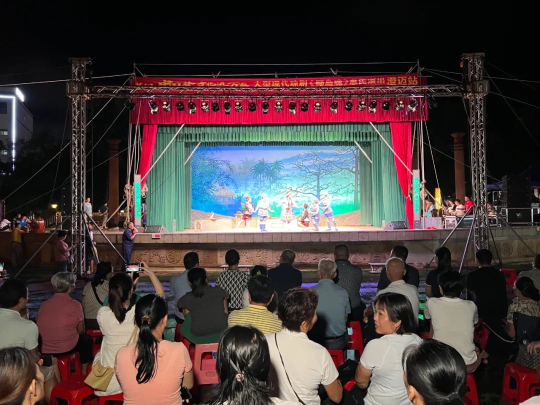 9月12日晚,“我们的中国梦,文化进万家”大型现代琼剧《椰岛魂》惠民演出第十一站在澄迈县金江绿地广场举行,为观众奉献了一场精彩的琼剧艺术盛宴。