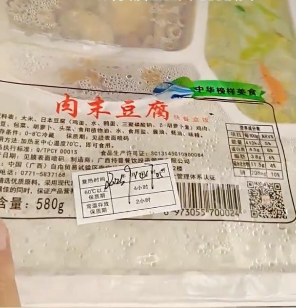 视频发布者称,当时列车员说有盒饭和煲仔饭两种,盒饭只有这一款肉末豆腐的,是35元。毫无怀疑买了一份,打开包装出现这一幕。