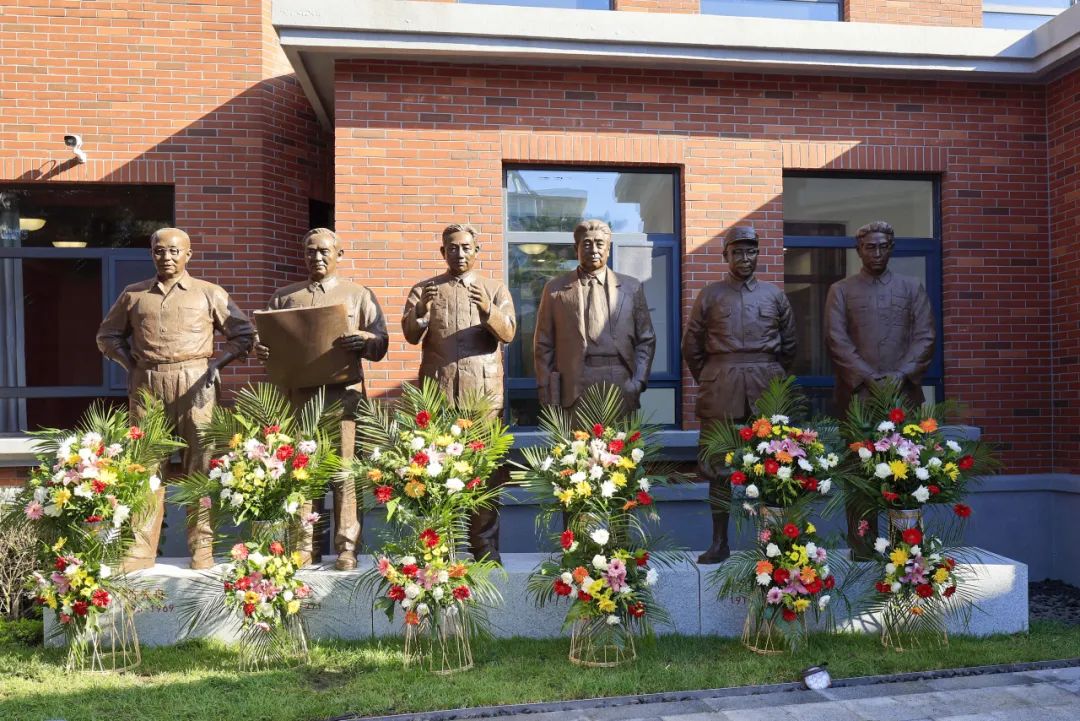 “正步走!”庄重严肃的氛围中,吉林大学国旗护卫队队员身着统一礼服,稳步抬起花篮,迈着有力的步伐,缓缓走向六位先贤雕塑,将花篮敬放在先贤纪念雕塑前。鲜花簇拥绽放,寄托着吉大师生对先贤的深切缅怀与崇高敬意。