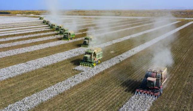 锁住沙漠的图木舒克,真是一方宝地,来自天山和昆仑山的雪水渗入到这里,沙漠底下有丰富的矿物质,抢出来的绿洲可培育万垄良田。图木舒克市成为全疆乃至全国重要的优质商品棉生产基地之一,棉花后来成为师市的主导产业,种植棉种常年保持在100万亩左右。