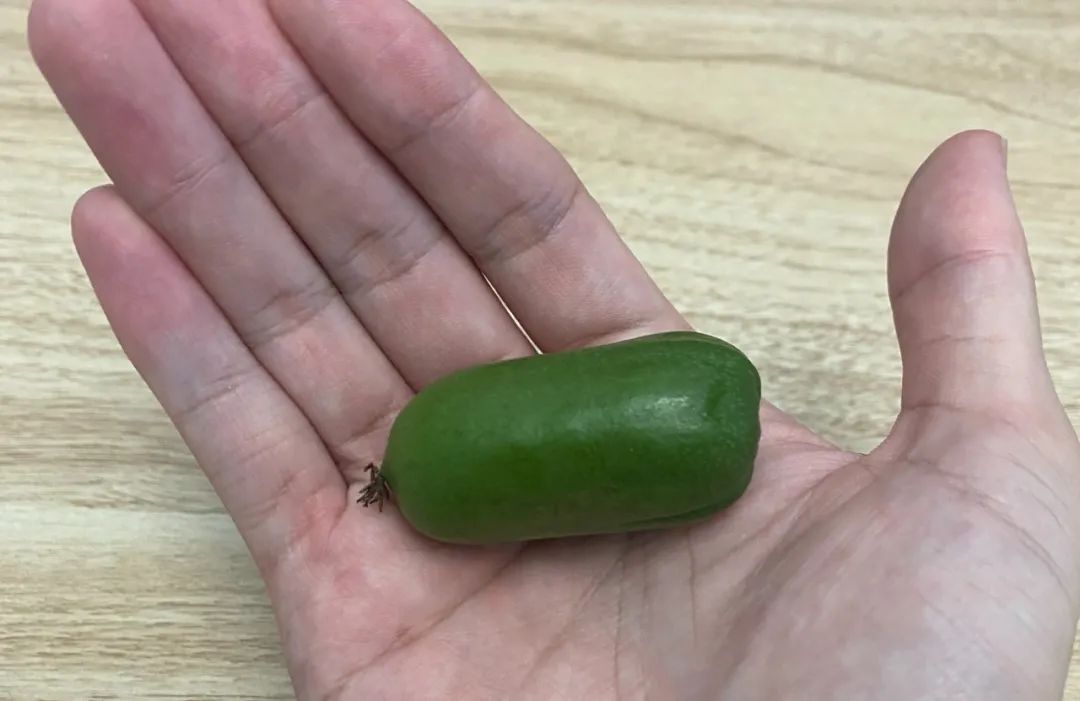 最近,一款有着“维C王者”称号的水果奇异莓在网络上走红。小编还真没吃过,听说奇异莓上市了,便去超市选购。小编先是探访了几家水果店并没有找到奇异莓,询问水果店的销售人员得知,由于奇异莓的认知度比较低,普通的水果店担心销售不出去,所以很少进货。之后小编在一家大型商超发现了它的身影,它外形如同水果黄瓜,表皮很薄、翠绿光滑。但是个头小巧,和枣子一般大。切开一看,奇异莓的果肉和猕猴桃一模一样,外观上奇异莓就像是一种外皮没毛的小号猕猴桃。