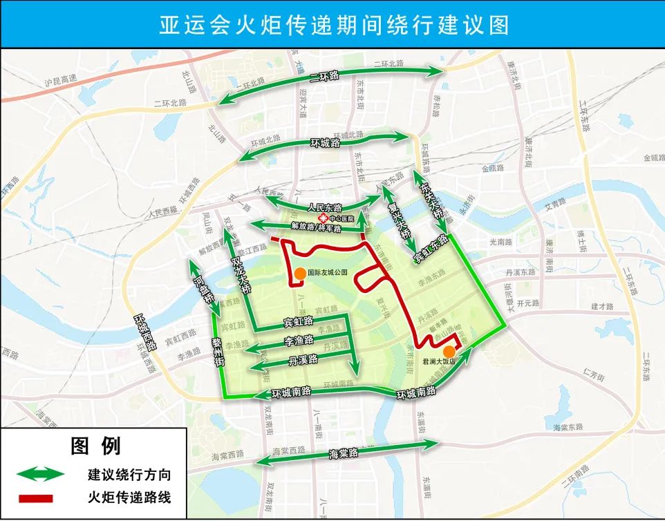 市区东西方向通行车辆建议经由环城北路、人民路、环城南路、海棠路等外围道路绕行。