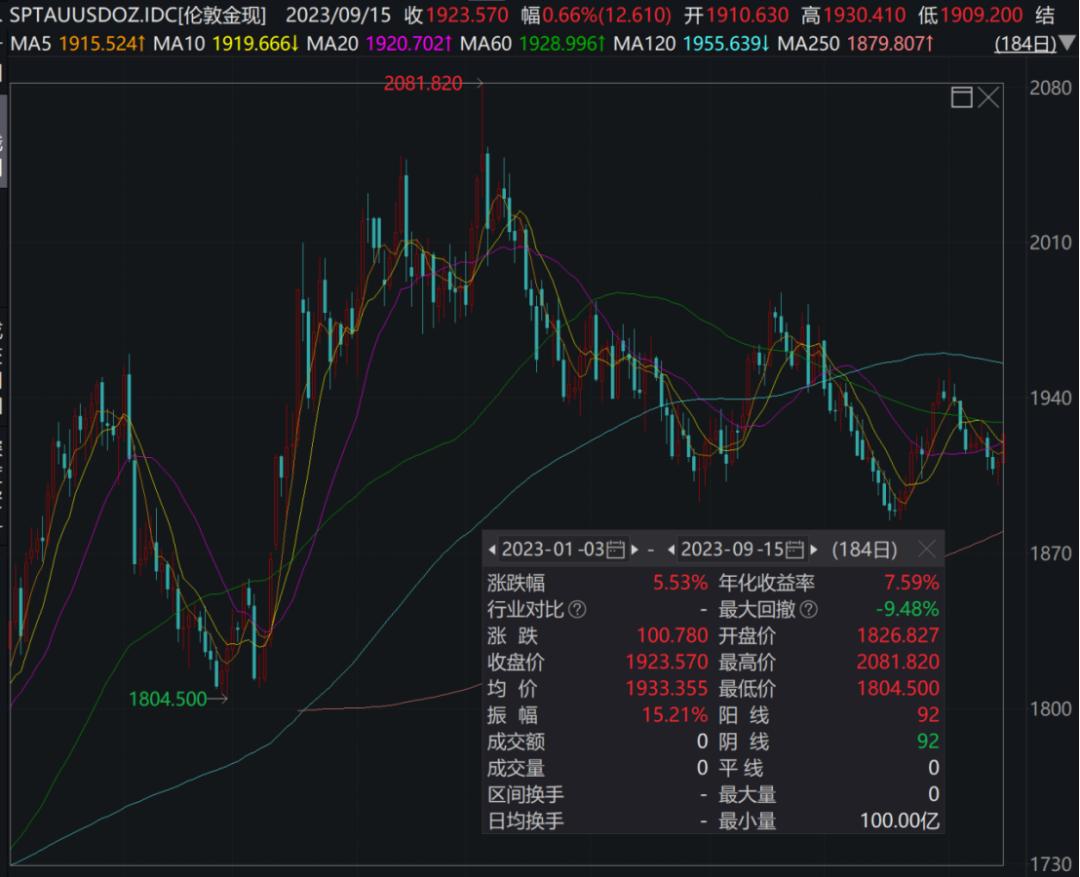 8月末以来,国际黄金现货价格出现回调,截至9月16日伦敦金现报收1923.57美元/盎司,较之前有所回暖。
