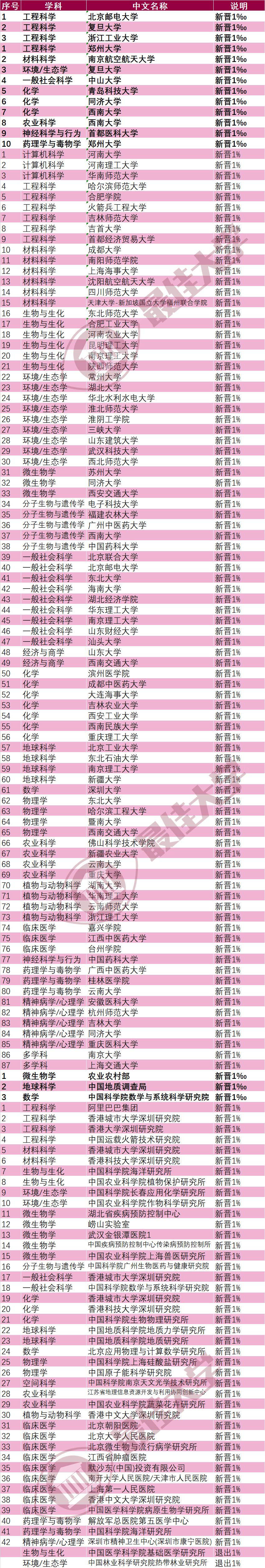 本次共431所高校有学科进入全球前1%,其中新增3所,无退出。新增高校为:火箭兵工程大学、北京联合大学、合肥学院。