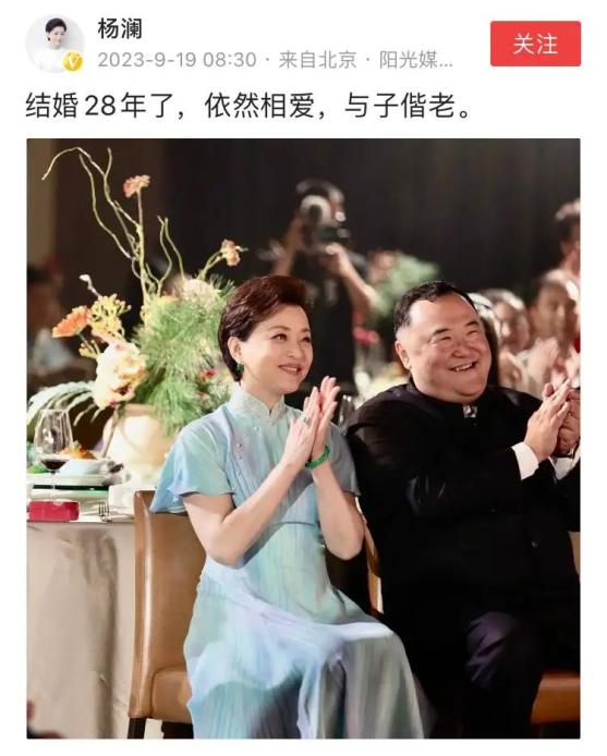 9月19日,知名主持人杨澜在社交平台上罕见地大秀夫妻恩爱,她发文宣布:“结婚28年了,依然相爱,与子偕老。”同时她还附上了一张自己与丈夫吴征的合照。这一举动不仅让网友羡慕,同时也澄清了最近有关他们夫妻离婚的爆料传闻。