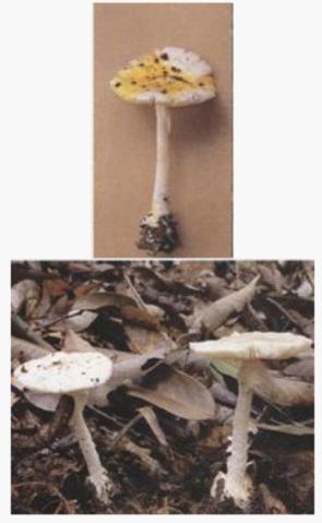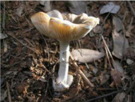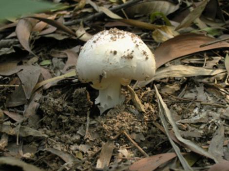 在广东地区,导致中毒人数最多的两种蘑菇分别是白毒伞(致命鹅膏)和铅绿褶菇,其中白毒伞又是毒性最强的。白毒伞的白色菌体幼时卵形,后菌盖展开成伞状。常在黧蒴树树荫下群生或散生,分布在广州、清远、肇庆等地,大量生长于春季温暖多雨的3~4月,5~7月也少量出现。