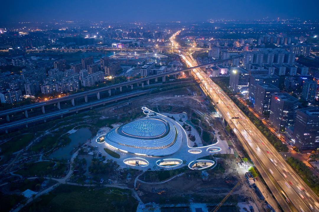 被网友称为“星际战舰”的“杭州电竞中心,外形酷炫,作为中国第一座完全符合亚运会电竞正式比赛标准的电子竞技馆,它不仅是电竞爱好者和选手的乐园,也是设计师的杰作。杭州中国电竞中心以“星际漩涡”为设计理念,将电竞时尚元素和千年运河文化相结合,与电竞比赛的科幻感、未来感非常契合。
