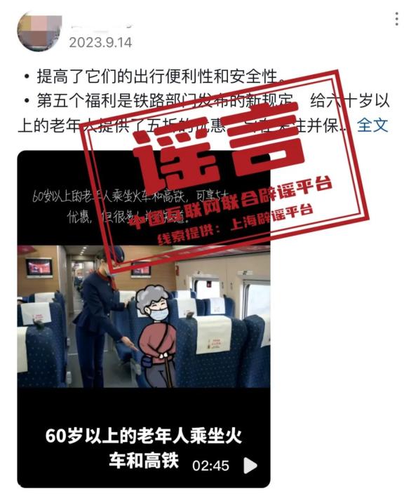 原标题:《【谣言粉碎机】今年国庆后老年人可半价购买火车票?》