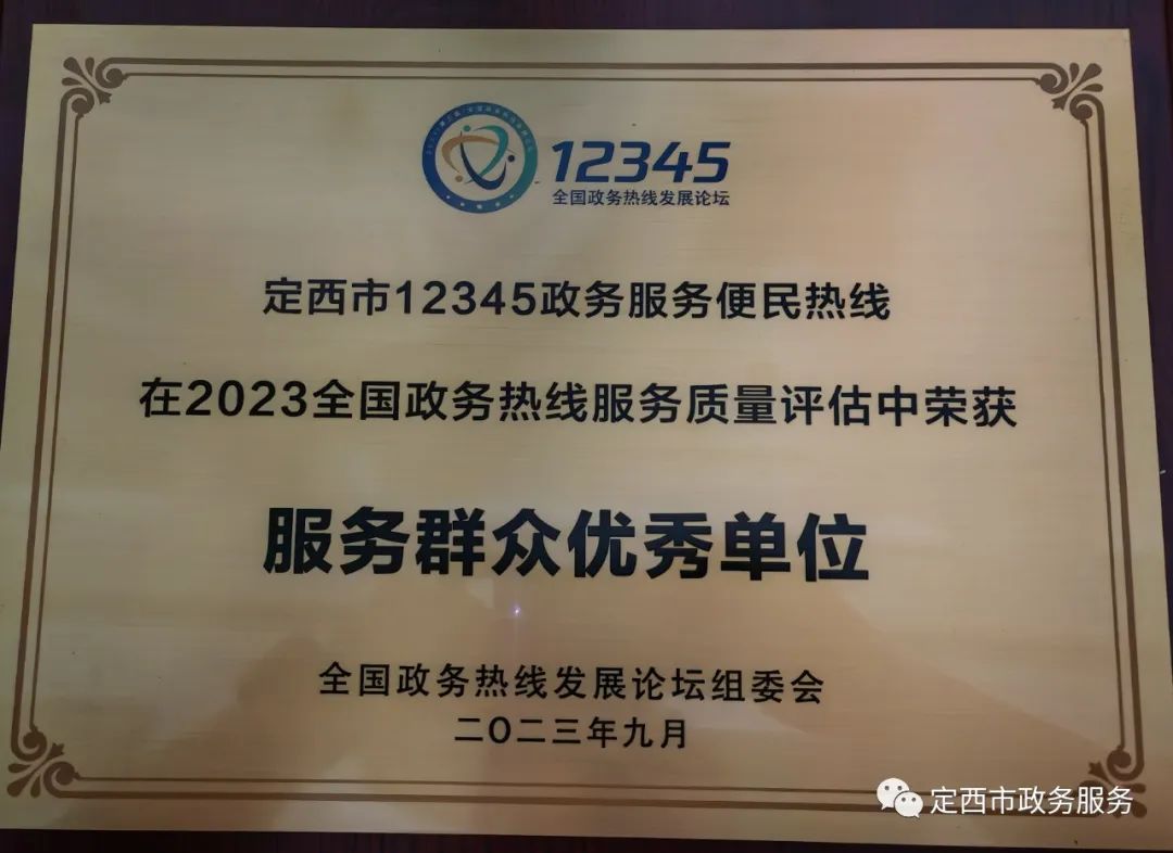 原标题:《定西市12345政务服务便民热线荣获“服务群众优秀单位”奖》