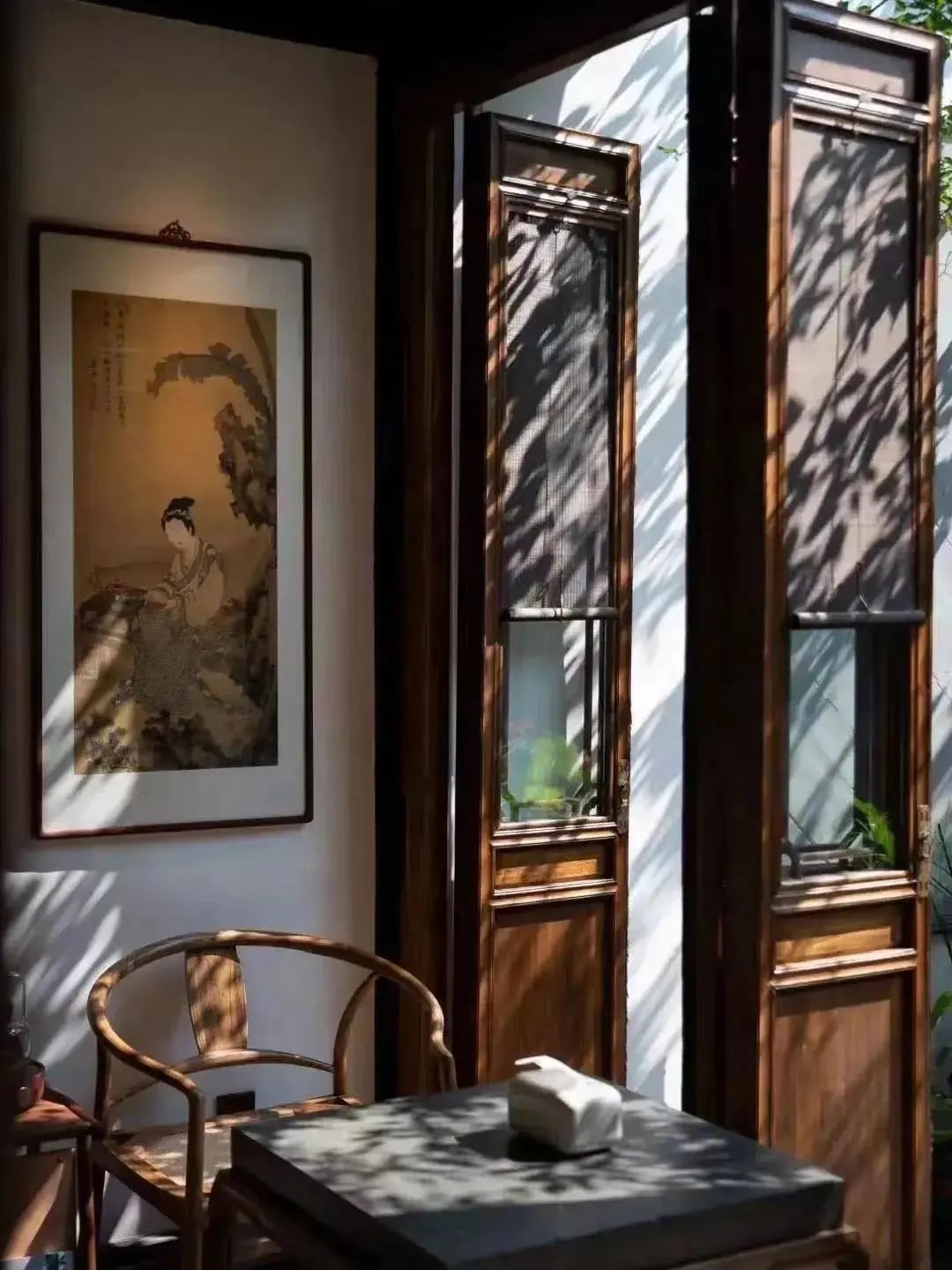 这座占地760多平方米的古宅是一座典型的三进式中式庭院建筑,一重庭院一道风景。青瓦硬山顶,院落三水归堂,南侧围墙高耸,上有传统镂空雕饰,是难得的保存完好的明清庭院式古宅。老宅经过修复,对所有空间进行了优化划分,让老宅既保留风韵又富有现代功能。