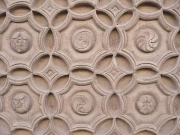 坛城又被称之为曼陀罗,在藏传佛教中表示宇宙的模型。原本坛城是一种修建在室内的建筑,供佛教修炼者观想,后来坛城演变出了多种不同的形状,画在寺院经堂平綦格上的就是其中之一。妙因寺内的坛城,绝大部分是明代绘制的。这些坛城数量繁多,形制各异,分别代表了藏传佛教不同教派、不同时期的宗教信仰和艺术风格。除大经堂外,妙因寺内的多吉羌殿、科拉殿内也都发现了各种形制的坛城,如果算上红城感恩寺的坛城,加起来近千个坛城。