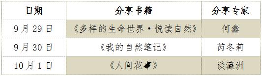 中秋国庆长假将至,除了精彩纷呈的展览、市集和游园活动外,上海植物园将首次推出“自然书香”读者见面会,与您共度佳节。届时,上海自然博物馆副研究员何鑫、上海市优秀科普作家芮东莉、复旦大学教授谈瀛洲将带着他们的新书,亮相上海植物园,与“书粉”们近距离互动,大家千万不要错过哦!