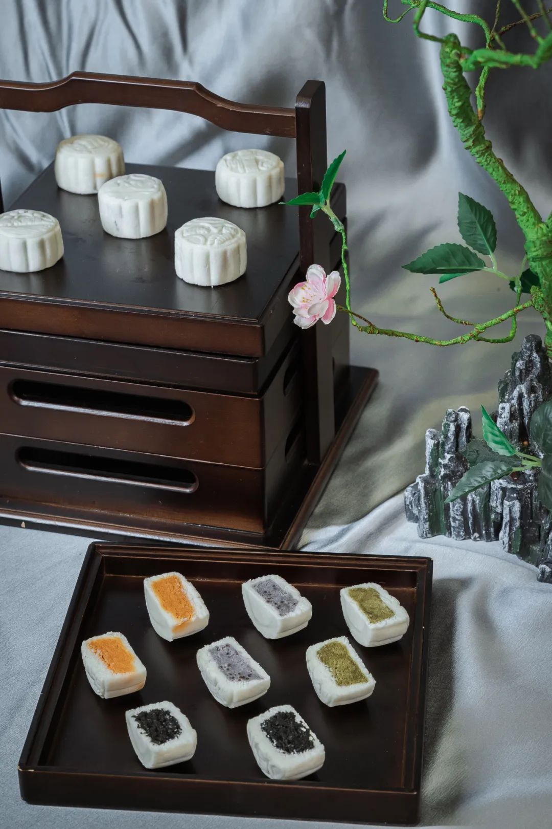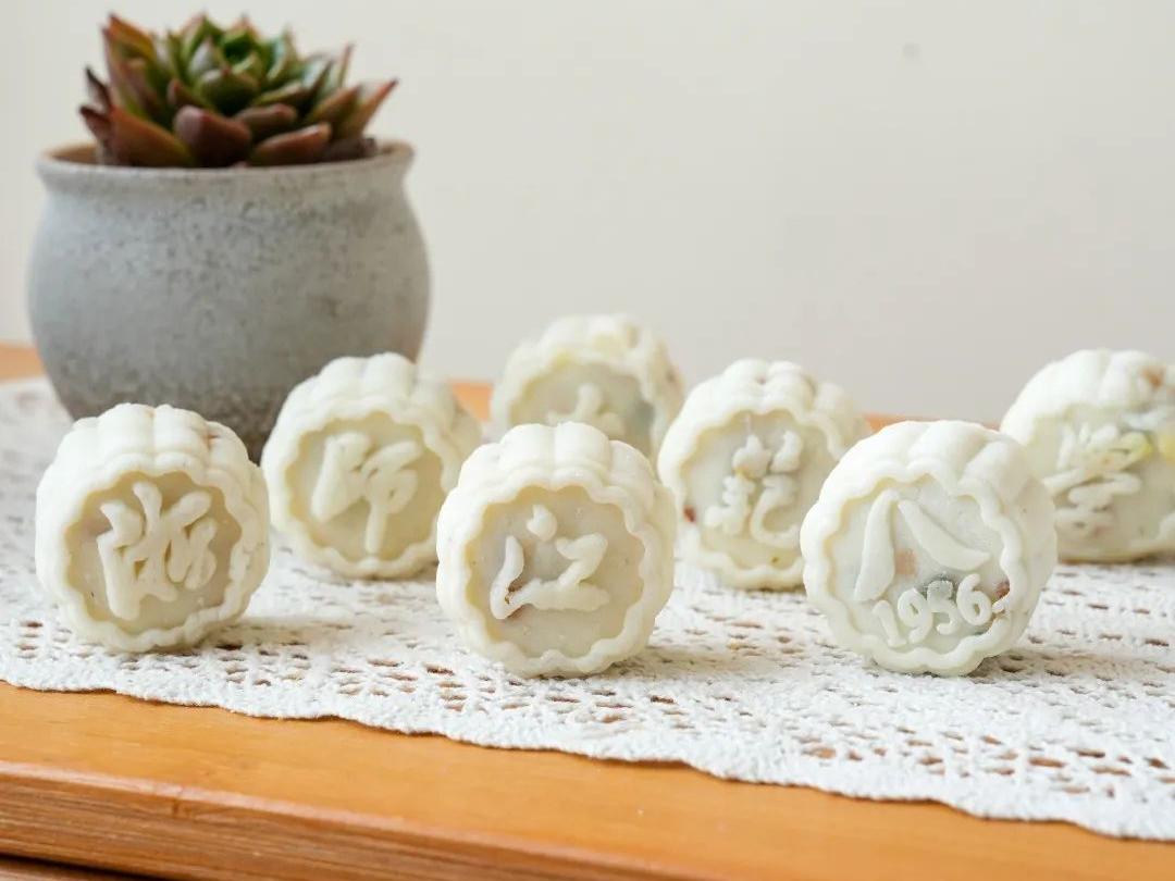 改良式广式月饼,口味淡甜、口感绵密,可搭配有清香味的茶。