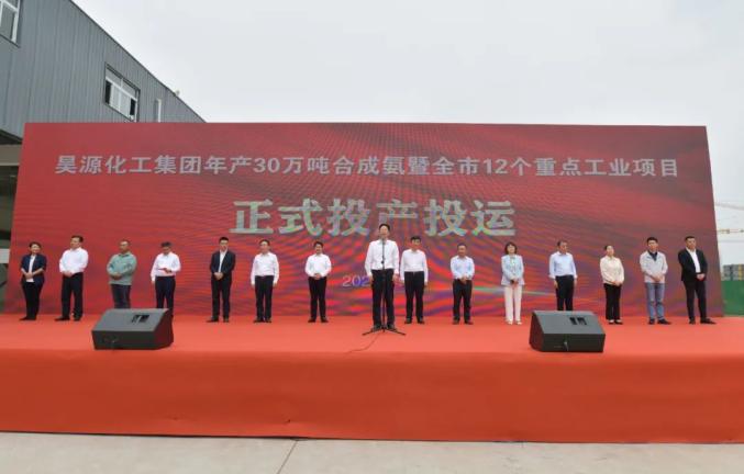 9月27日,昊源化工集团年产30万吨合成氨暨全市12个重点工业项目正式投产投运。市委书记刘玉杰出席活动并宣布项目正式投产投运,市委副书记、市长胡明文讲话。昊源化工集团有限公司董事长凡殿才,安徽德信佳生物医药有限公司总经理王启成发言。市领导王波、陶颖、虞建斌、于伟等参加。