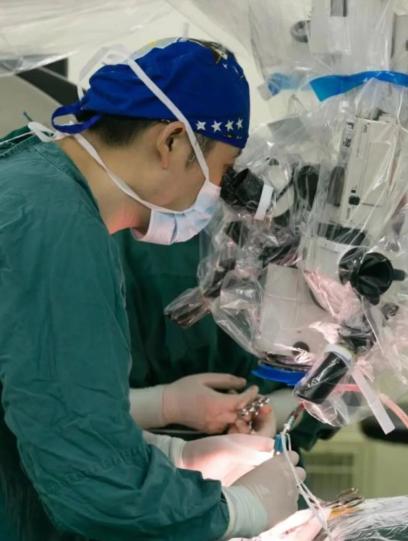 当他从普外科转到神经外科时,他手中的那把手术刀已经游刃有余;从开放性手术转到显微手术,他也没有遇到过渡期,“仿佛天生就会一样。”手术中,他习惯右腿撑住全身,有时一个斜姿可以站上四个小时,腿会僵硬,却丝毫不影响手上行云流水般的动作。