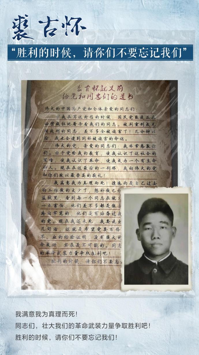 裘古怀就义前给党和同志们的遗书(节选):