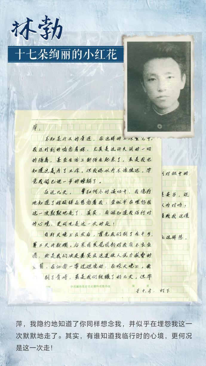 “我们决定要突出这受敌人武力威胁的重围,在江南一带迂回流动。”在信中,既饱含了林勃对恋人的思念之情,也彰显了他舍身革命的决心。