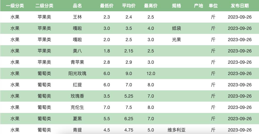 根据新发地官网更新的价格行情(单位:斤,9月26日数据),阳光玫瑰最低价6元,平均价9元,最高价12元,相应的,巨峰平均价5.25元,辽峰平均价8元,夏黑则是6.25元。新发地是北京最大的农产品批发市场,也是北京地区蔬果的晴雨表。