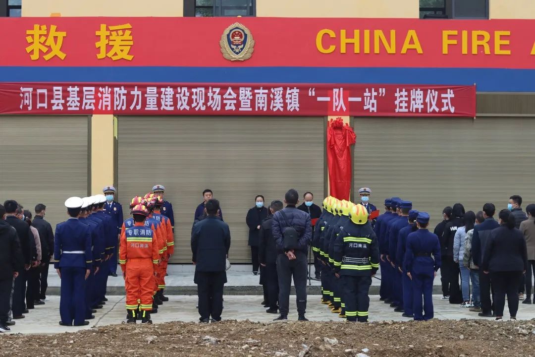 自基层消防力量建设工作开展以来,河口县高度重视、精心谋划,加大力量投入,从人力、财力及物力上给予全方位支持,在县委、县政府的关心支持和各相关部门的合力推动下,按时达标完成了建设任务,于9月9日所有乡镇全部完成“一队一站”揭牌。目前,各乡镇消防工作站的人员、装备器材以及车辆已全部按照标准配足配齐,并投入实体化运行。