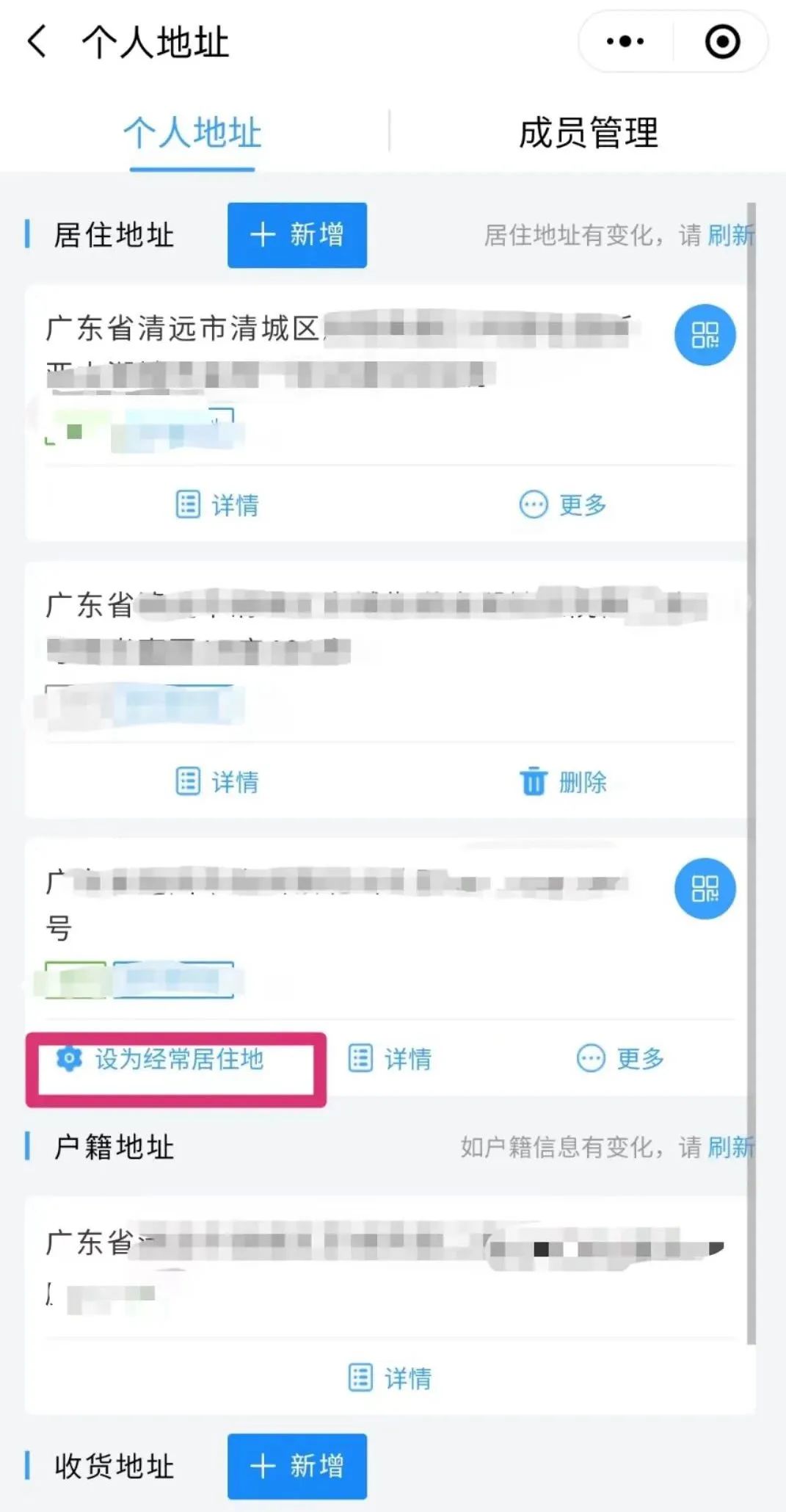 第四步:设置经常居住地。点击【个人地址】,在居住地址点击【设为经常居住地】。