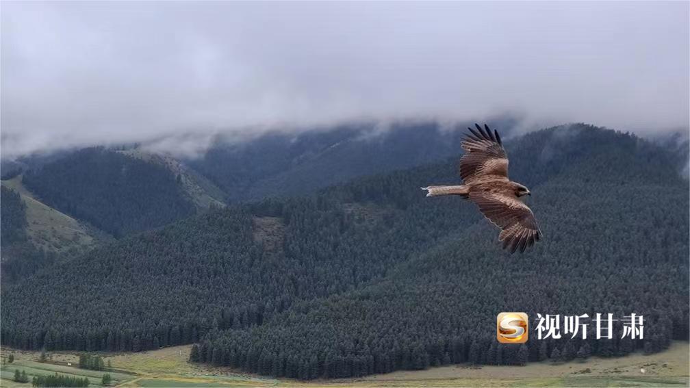 近日,甘肃祁连山自然保护区管护人员在外出巡护时,使用无人机拍摄到国家二级野生保护动物黑鸢。