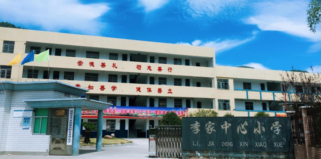 1918年创办于四灵区李家村,初名为“四灵区区立第二国民学校”。1992年撤乡并镇,长林小学并入后改为李家镇中心小学,本部在李家村名为李家镇中心小学,分部在长林名为李家镇长林小学。2002年改名为建德市李家中心小学,沿用至今。