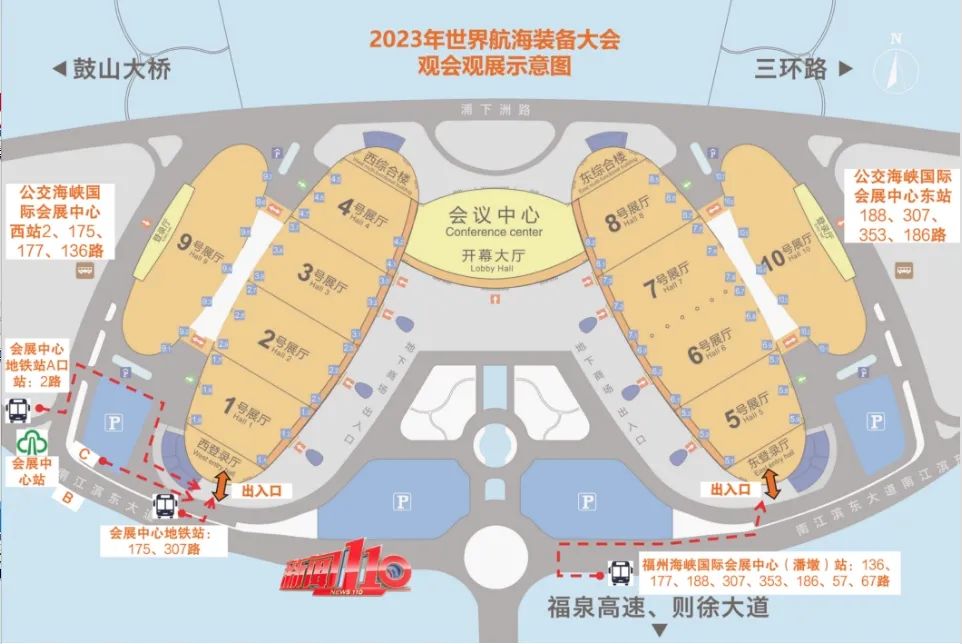 1.乘坐136路、177路、188路、307路、353路、186路快线、57路、67路至“福州海峡国际会展中心(潘墩)”公交站,步行至东登录厅大会出入口(5号馆);