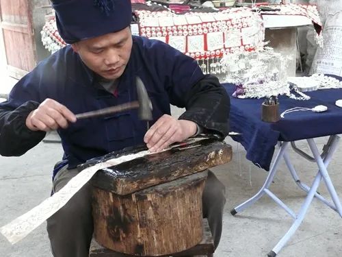 苗族同胞大量使用银饰制品,成为银饰制作工艺不断发展的重要因素。苗族银饰全系手工制作,有30多道工序,形成铸炼、锤打、焊接、洗涤等一整套工艺过程。