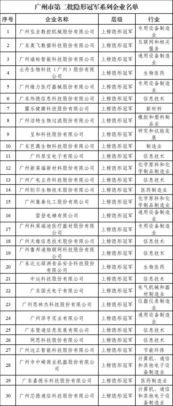 原标题:《广州市第二批隐形冠军系列企业名单发布》
