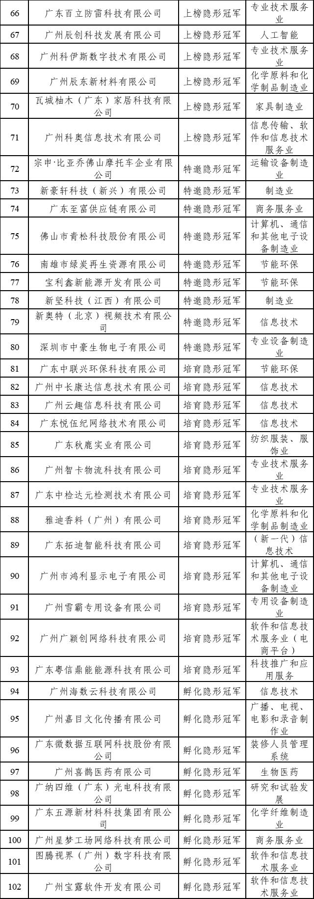 为发掘、培育和孵化一批在细分行业领域创新能力优、行业地位高、盈利水平好的“隐形冠军”企业,助力企业融入重点产业链、供应链、创新链和价值链,提升企业影响力和竞争力,实现高质量发展,在广州市科学技术局的指导和推动下,广州市产业招商投资促进会通过相关部门、行业、高校推荐、企业自荐等方式,最终遴选出第二批隐形冠军系列企业102家(名单详见文末)。