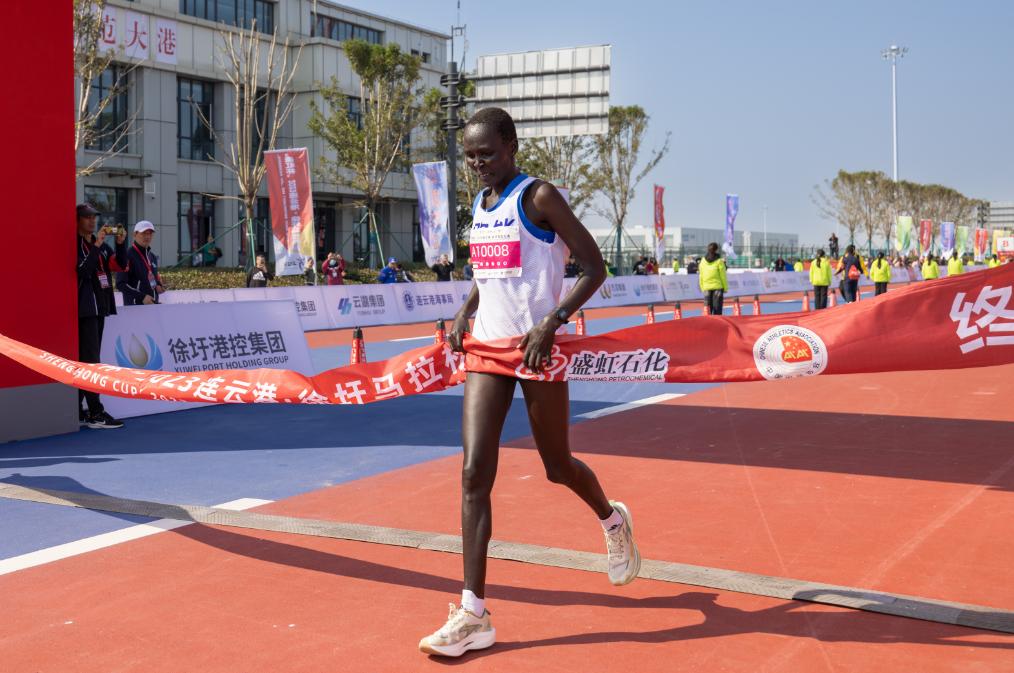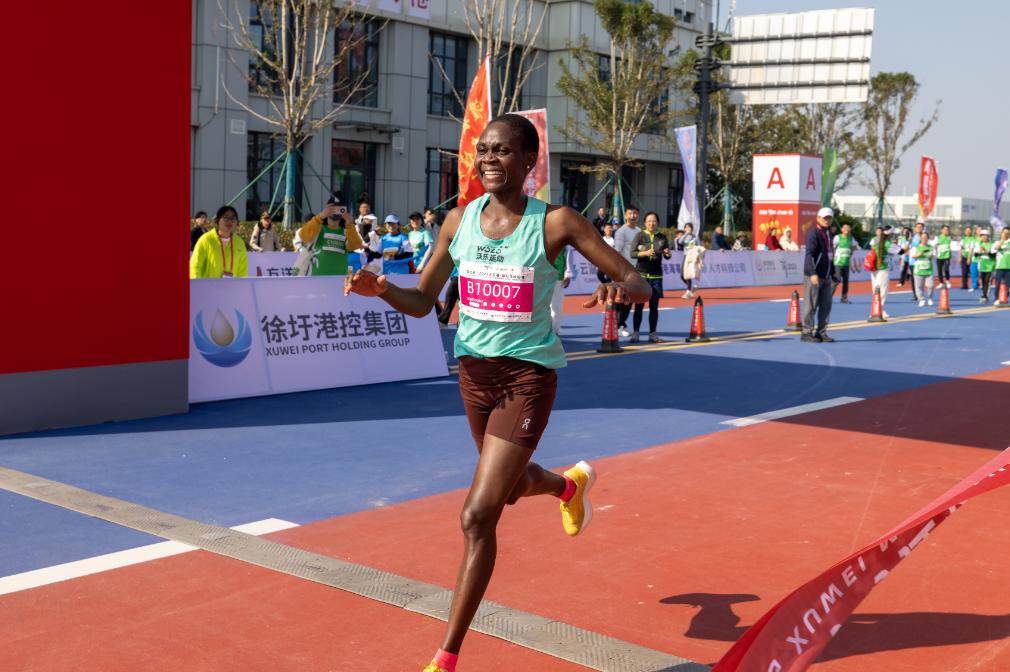 ▲ 来自肯尼亚的杰克琳·吉普坦努以1小时17分04秒获得女子半程马拉松冠军。