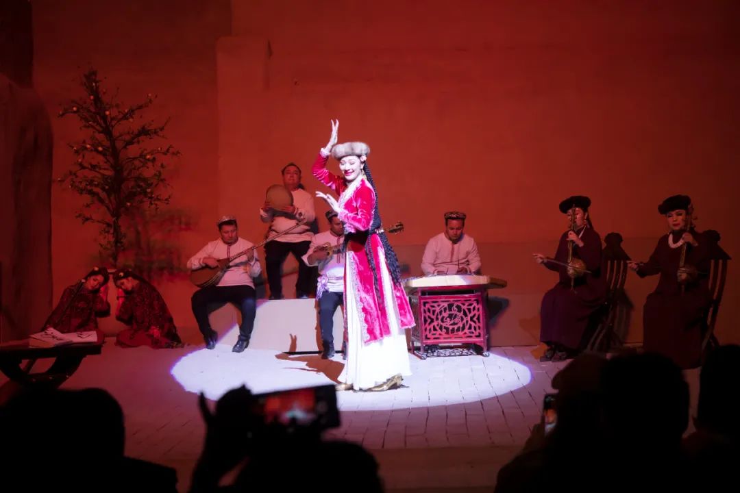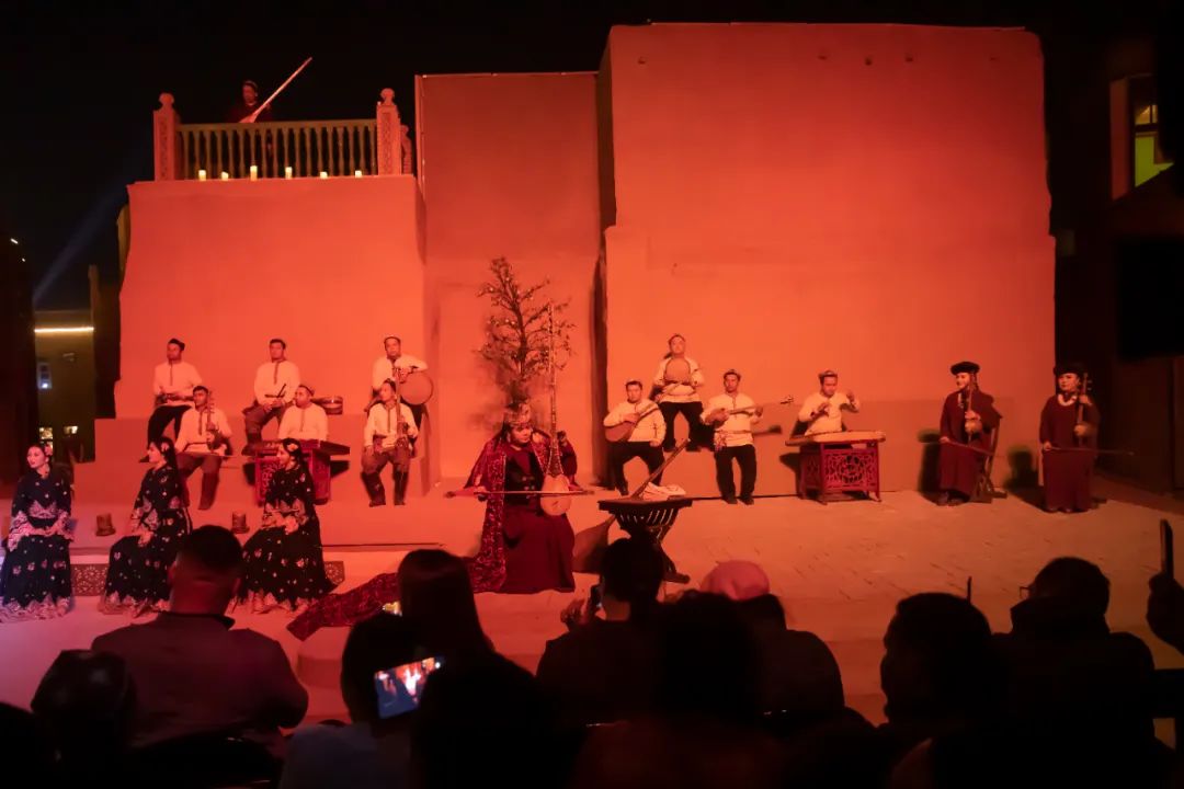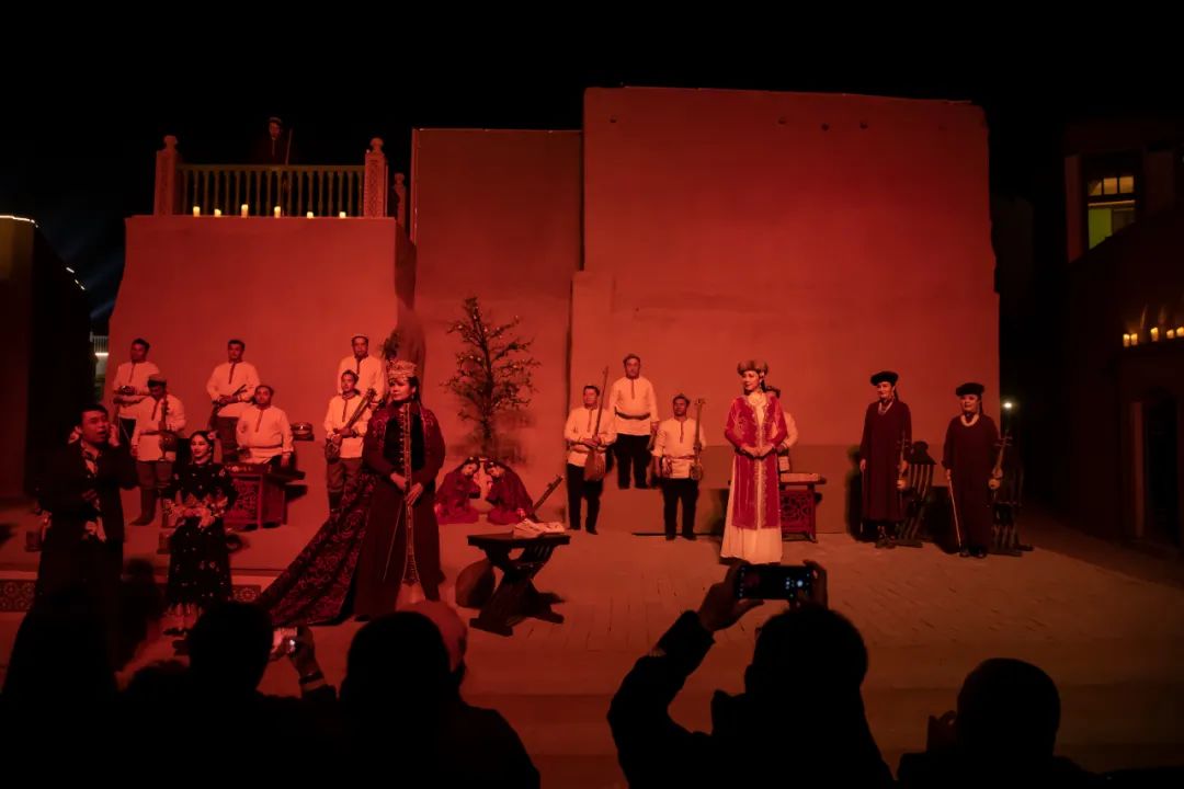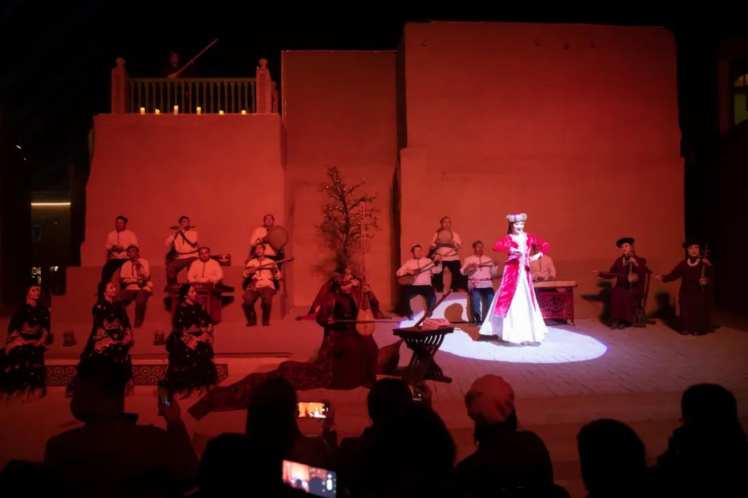 10月21日、22日,由高台当代艺术中心与喀什入迷文创联合打造,喀什市文化体育广播电视和旅游局特别支持的当代木卡姆音乐舞剧《石榴的颜色》在高台民居精彩上演。